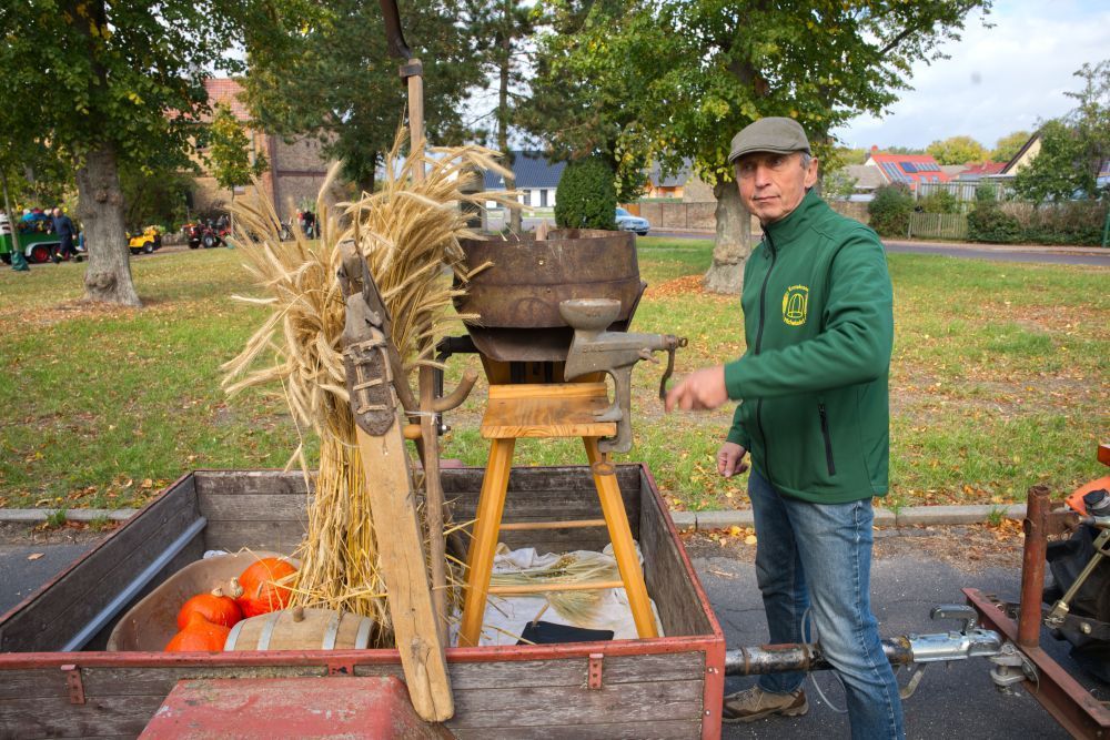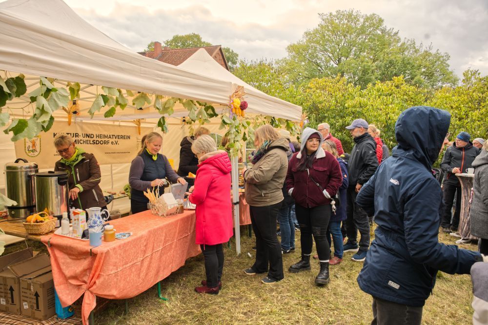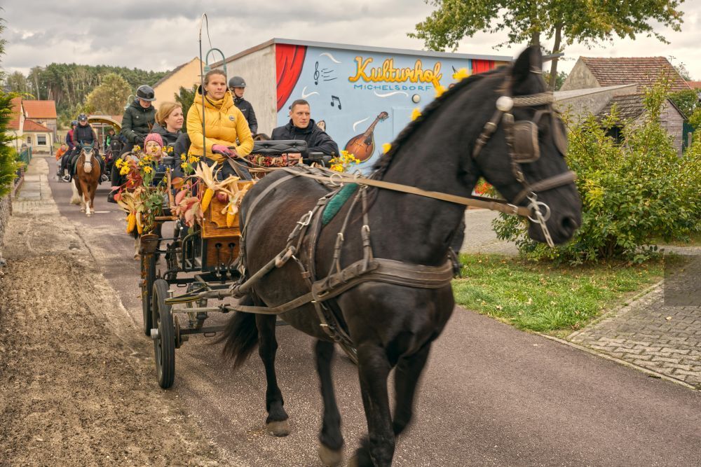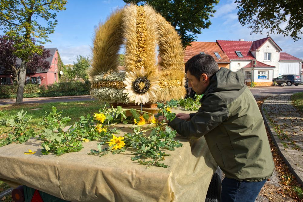 Aber zuvor ist die Erntekrone für die Michelsdorfer da, als Symbol der Wertschätzung für die Naturgaben. Sie bildet den Mittelpunkt bei dem Michelsdorfer Erntedankfest. Der Männergesangverein und der Kultur- und Heimatverein sowie die Michelsdorfer:innen, die ihre Felder beackern, unterstützen dabei das Team Erntekrone und die hiesige Kirchengemeinde: