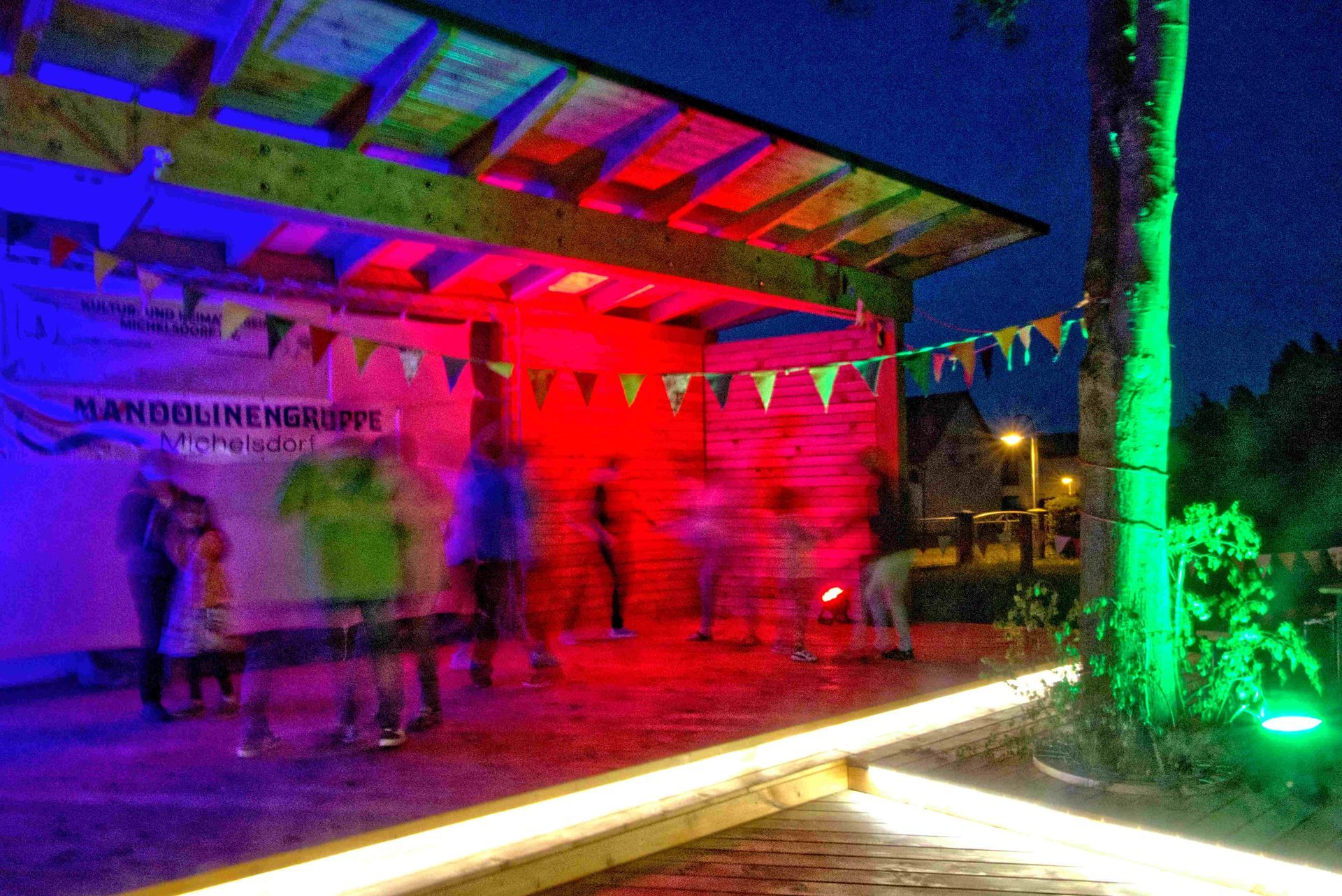 Mit untergehender Sonne tauchte der Kulturhof in einen warmen Farbtupfer ein. „Kommt echt cool rüber die neue Beleuchtungstechnik!“ Das sorgte für die richtige Stimmung für einen Tanz: Waren es zunächst die Kids, die ihre Performance darboten, wurde die Statik der Bühnenbretter spätestens bei der Annemarie-Polka einem Härtetest unterworfen.