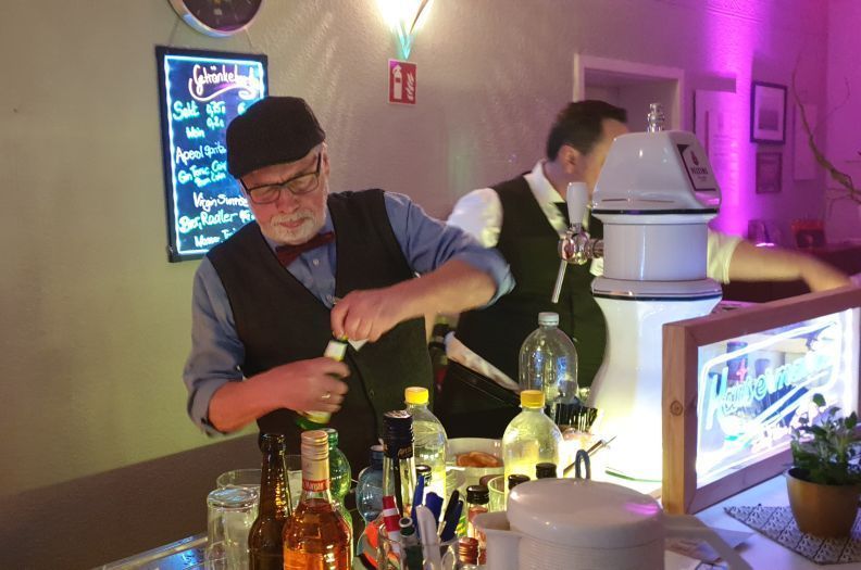 Es sollte an nichts fehlen. Die Tafel an der Bar blinkerte ständig ihr Angebot in den Saal, ein liebevoll ausgestattetes Buffet, an dem sich viele bei der Vorbereitung beteiligt haben.