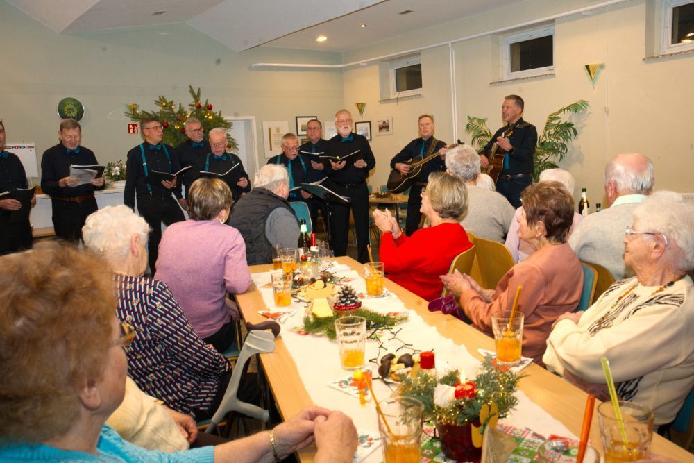 Das musikalische Kulturprogramm konnte der Verein lässig aus dem Michelsdorfer Fundus zaubern. Zuerst wurden von der Vereinsvorsitzenden Katja Leichsenring die „Boygroup“ angekündigt. „Echt jetzt, eine Boygroup?“ Nicht ganz. Die zwei nicht mehr ganz taufrischen Michelsdorfer Klosterbrüder gaben ihr musikalisches Ständchen zum Besten - wie immer mit tatkräftiger Unterstützung aller Anwesenden. Aber Gänsehaut gibt es natürlich erst, wenn die Sänger des Michelsdorfer Männergesangvereins unter Dirigent Sven Klatte mit ihren schwarzen Anzügen und türkisfarbenen Krawatten und Hosenträgern einmarschieren. Sie zauberten wohltuenden Gesang aus ihren Kehlen, der Weihnachtsgefühle in dem schön geschmückten Raum verteilte.