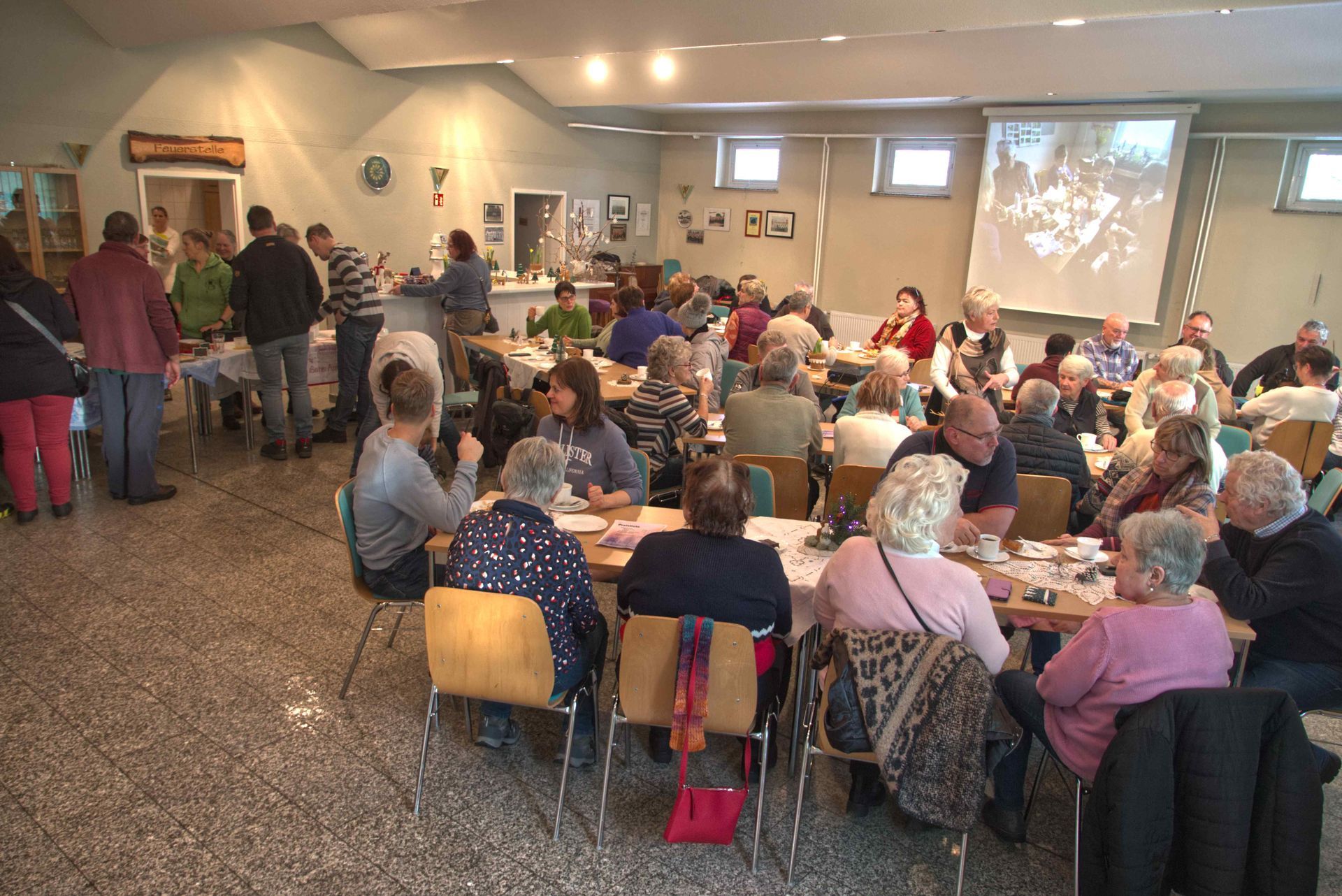 Im Gemeindezentrum angekommen konnten sich alle mit Kaffee, Kuchen und auch Herzhaftem stärken.